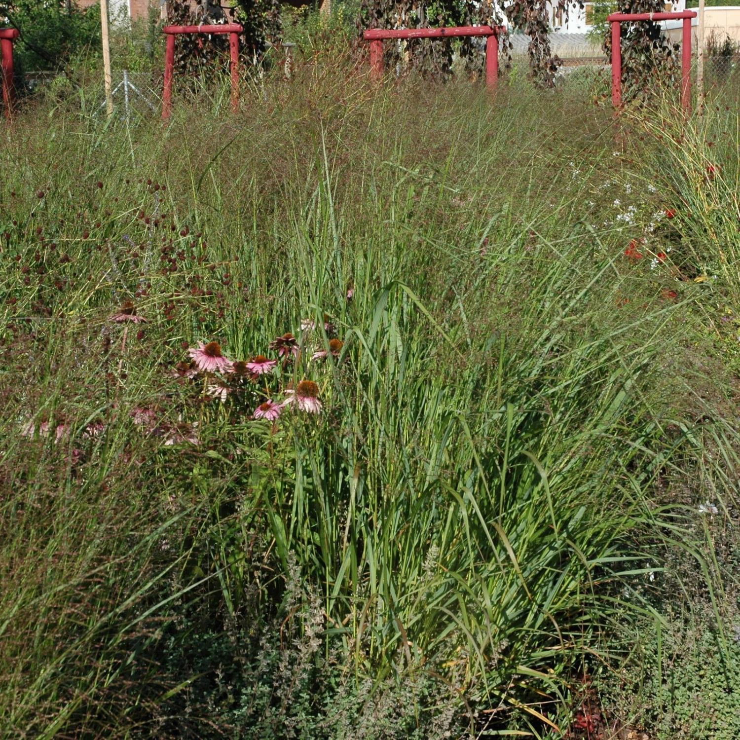 Die Rutenhirse Panicum virgatum ‚Squaw‘ ist ein hübsches Ziergras für Staudenbeete, Gärten im fernöstlichen Stil und für Steppengärten. Ein effektvolles Highlight stellen die zarten Blüten in Rosaviolett dar. Ihre Rutenhirse ist sehr trockenheitstolerant und entwickelt sich in sonnigen oder halbschattigen Lagen harmonisch. Schneiden Sie die Hirse erst im Frühjahr zurück, da diese Pflanze zahlreichen Insekten als Winterquartier dient.