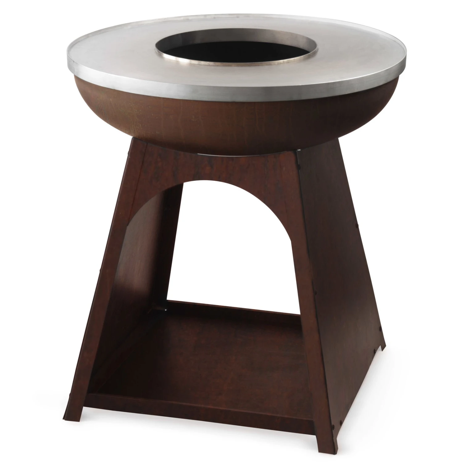 Einen verträumten Abend am Feuer verbringen oder leckeres Grillgut zubereiten? Mit der runden Feuerstelle TopUp geht beides, und das auf eine anspruchsvolle Art. Diese Feuerstelle ist aus dem trendigen Material Cortenstahl gefertigt und präsentiert sich in beliebter Rost-Optik. Für das Grillen steht Ihnen ein praktischer Ring aus Edelstahl zur Verfügung. Dank einer ausgefeilten Luftzirkulation verbrennt das Holz sehr sauber und Sie können sich über ein optimales Grillerlebnis freuen. Die Ablage für Holzscheite ist in der Feuerstelle TopUp bereits integriert, sodass Brennmaterial immer zu Genüge vorhanden ist. Auch wenn die Feuerstelle gerade nicht im Einsatz ist, profitieren Sie von einem modernen Blickfang auf Ihrer Terrasse oder im Garten. Die Feuerstelle ist witterungsbeständig und außerdem pflegeleicht.