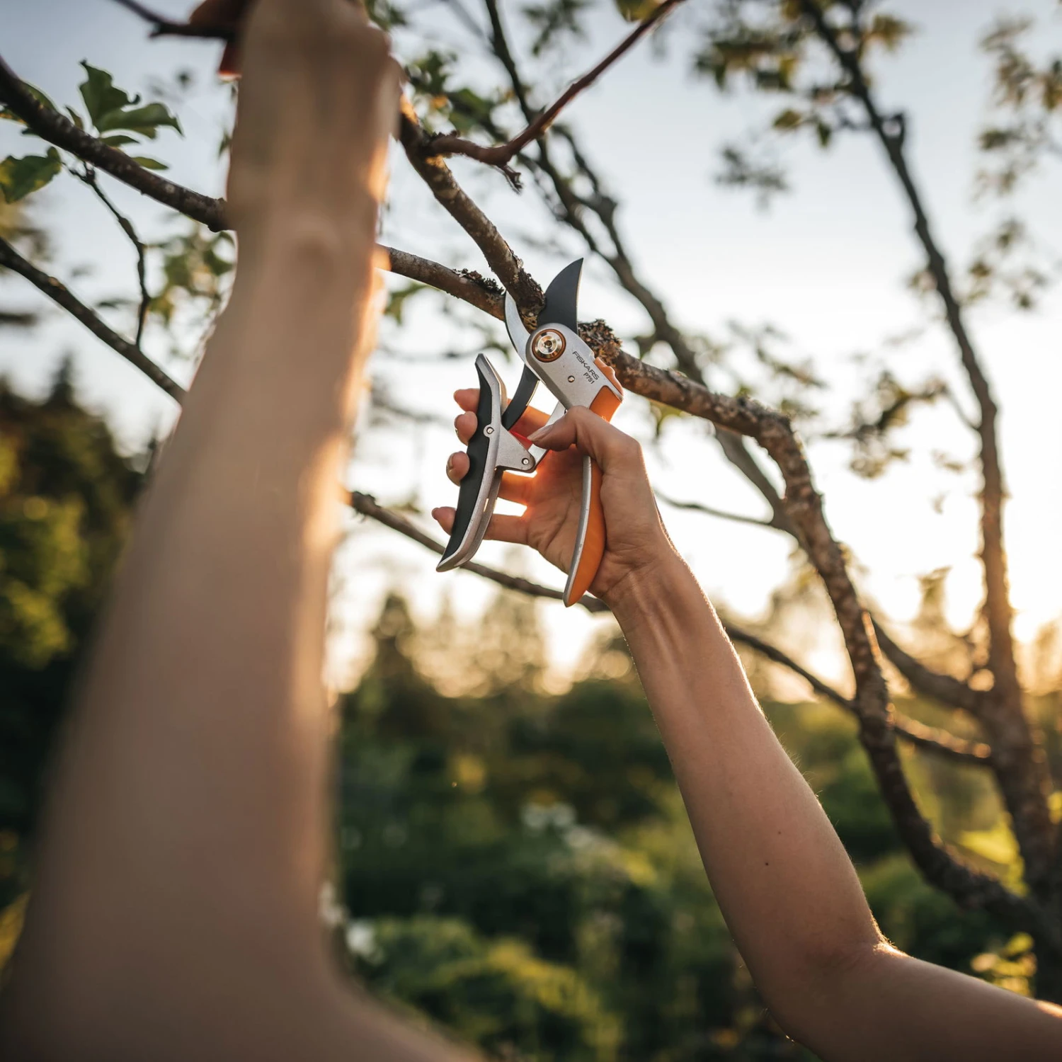 Die Bypass-Schere ‚Plus PowerLever‘ von Fiskars eignet sich hervorragend zum Schneiden von frischem Holz mit einem Durchmesser von bis zu 24 Millimetern und überzeugt nicht zuletzt durch die patentierte, kraftsparende PowerLever-Technologie. Diese Bypass-Gartenschere punktet mit einer scharfen, präzisionsgeschliffenen Klinge aus rostfreiem Stahl und mit ergonomisch geformten SoftGrip-Handgriffen.