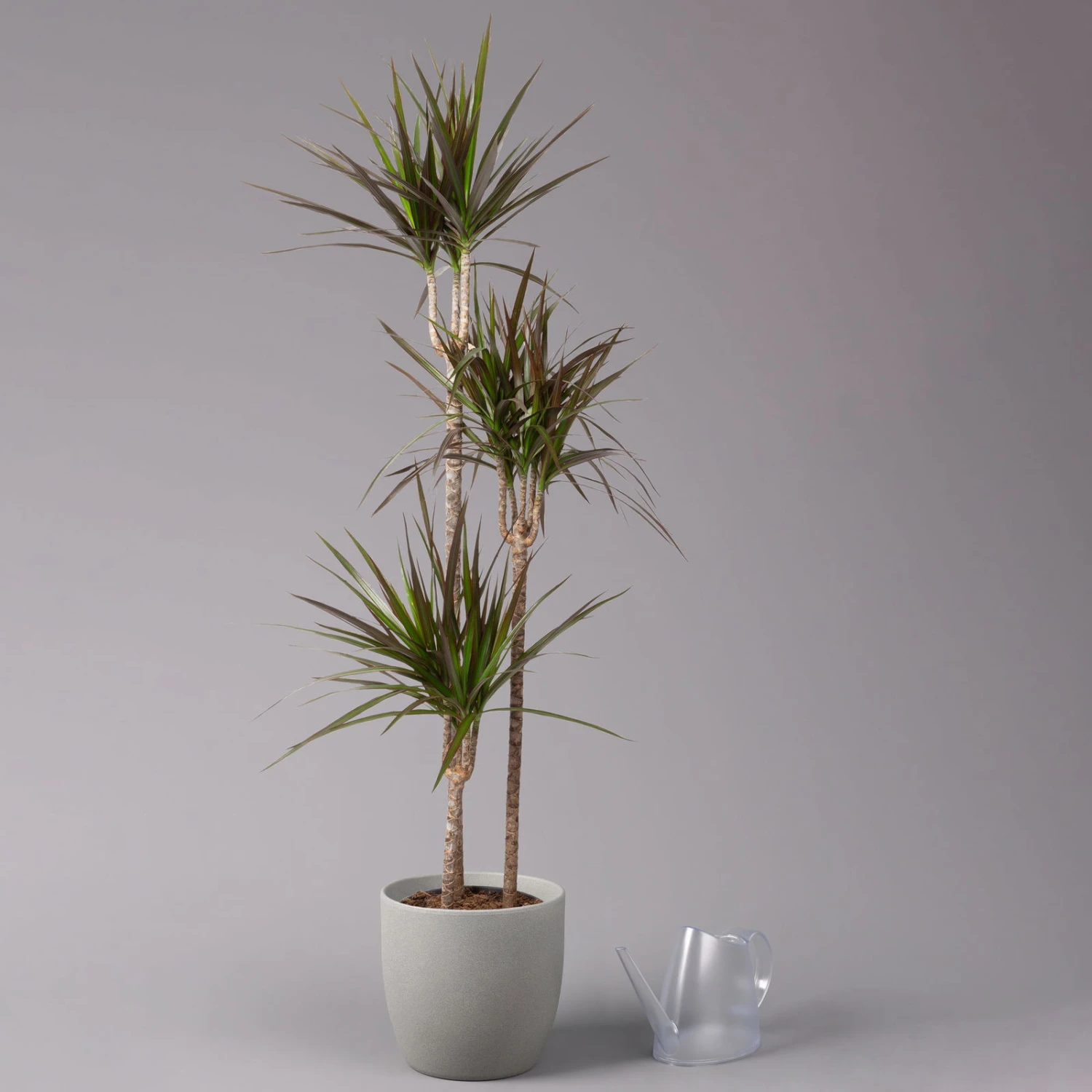 Mit einer filigranen Blattzeichnung und aparten Streifen in Dunkelrot ist die Dracaena marginata ‚Magenta‘ eine außergewöhnliche Erscheinung. Diese Zimmerpflanze lässt sich als Solitär oder als organisches Element der Raumbegrünung mit tropischem Flair gleichermaßen erfolgreich in Szene setzen. Wir empfehlen die Drachenbäume ganz besonders für den Einsatz in einem Büro, da diese Pflanze der Luft zahlreiche Schadstoffe entzieht. Aber auch als zuverlässiger Sauerstofflieferant wird die Dracaena ‚Magenta‘ hochgeschätzt. Dabei bleibt der Pflegeaufwand ausgesprochen gering, denn einem Drachenbaum reichen für eine harmonische Entwicklung sparsame Wassergaben und gelegentliches Düngen vollkommen aus. Sie dürfen Ihre Dracaena entweder im Halbschatten oder an einem hellen Standort pflegen. Vermeiden Sie jedoch unbedingt direkte Sonne (über den ganzen Tag), Zugluft und Staunässe.