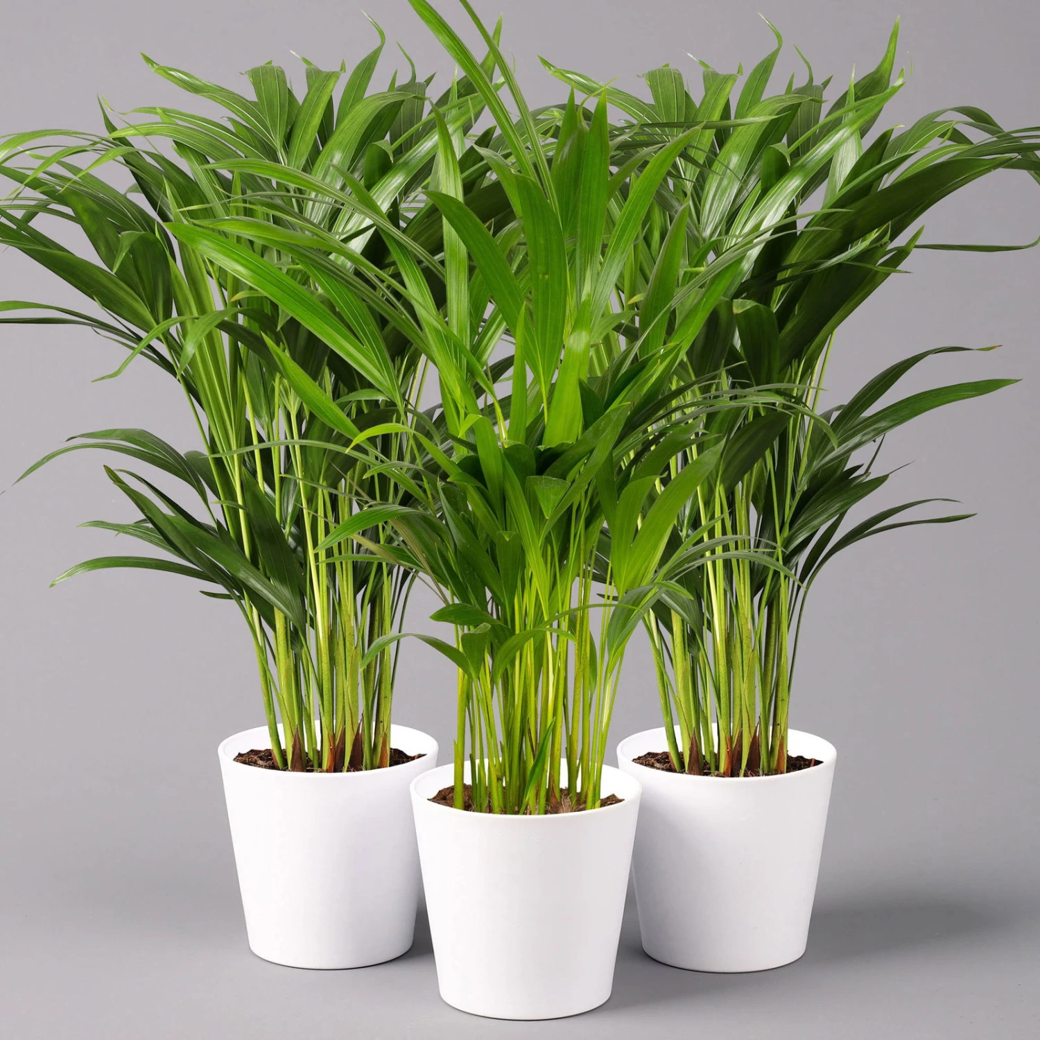 Die Goldfruchtpalme (Dypsis lutescens) ist ein anspruchsloses und dekoratives Palmengewächs von der afrikanischen Insel Madagaskar. Ihre Goldfruchtpalme fühlt sich an halbschattigen Standorten wohl und ist vor direkter Sonneneinstrahlung zu schützen. Pflegen Sie die Dypsis lutescens in den Innenräumen bei Temperaturen über 15 Grad Celsius. Für einen beheizten Wintergarten ist diese Zimmerpflanze genauso wie für Ihre Wohnküche oder Diele die richtige Wahl. Von April bis Oktober legt die Goldfruchtpalme einen hohen Wasserbedarf an den Tag, in der Winterzeit dürfen Sie die Wassergaben reduzieren. Am besten eignet sich zum Gießen lauwarmes und weiches Wasser, auch Sprühbäder tun Ihrer Zierpalme gut. Die Goldfruchtpalme verbessert nachweislich das Raumklima, indem sie der Luft mehrere Giftstoffe entzieht.
