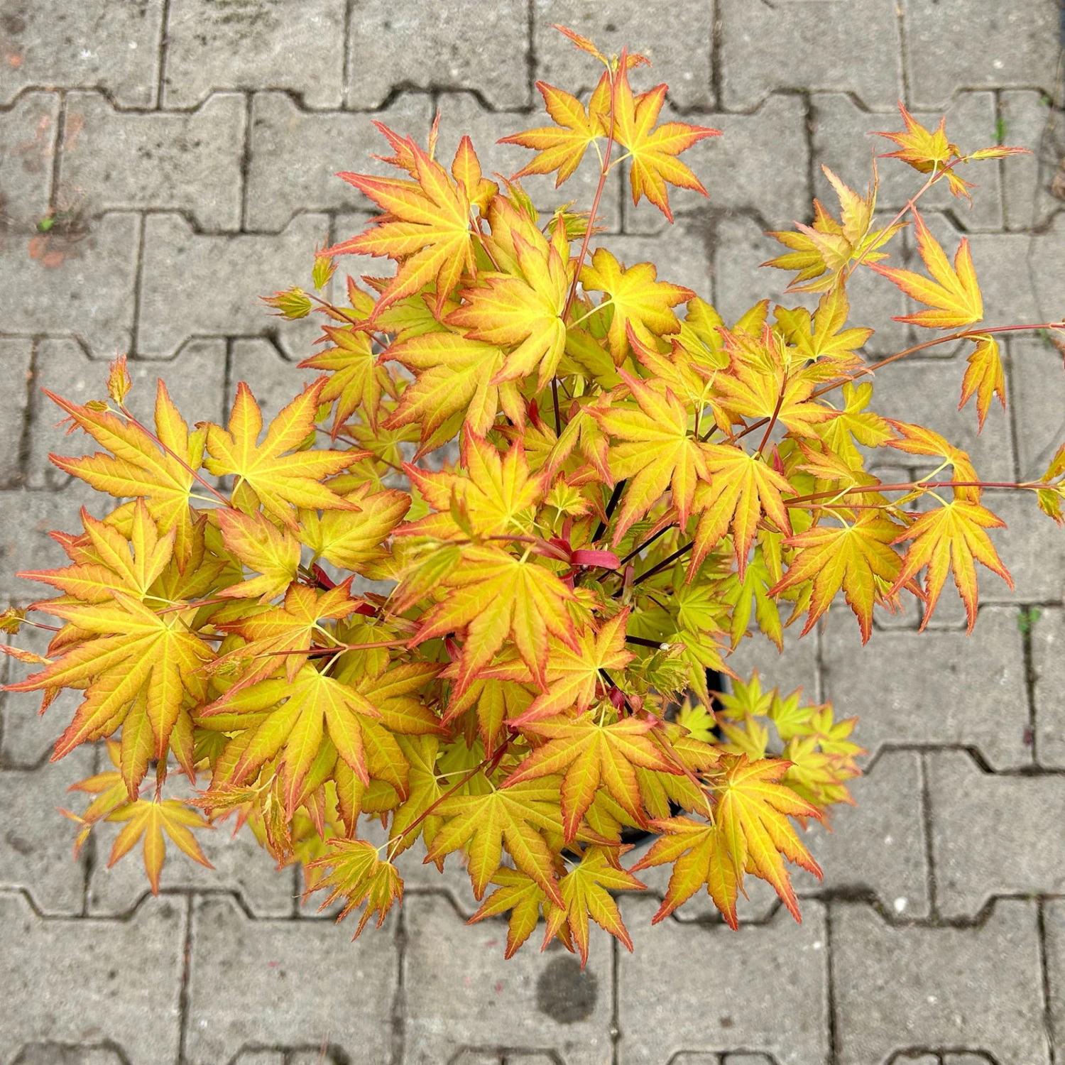 In voller Sonne bekommt der Acer gelegentlich Sonnenbrand. Der Acer ‚Orange Dream‘ ist toll in Kombination mit dunkelroten Sorten wie z.B. Acer ‚Bloodgood‘.