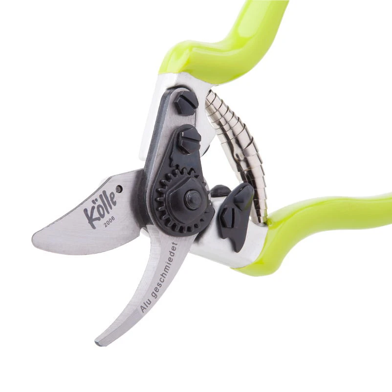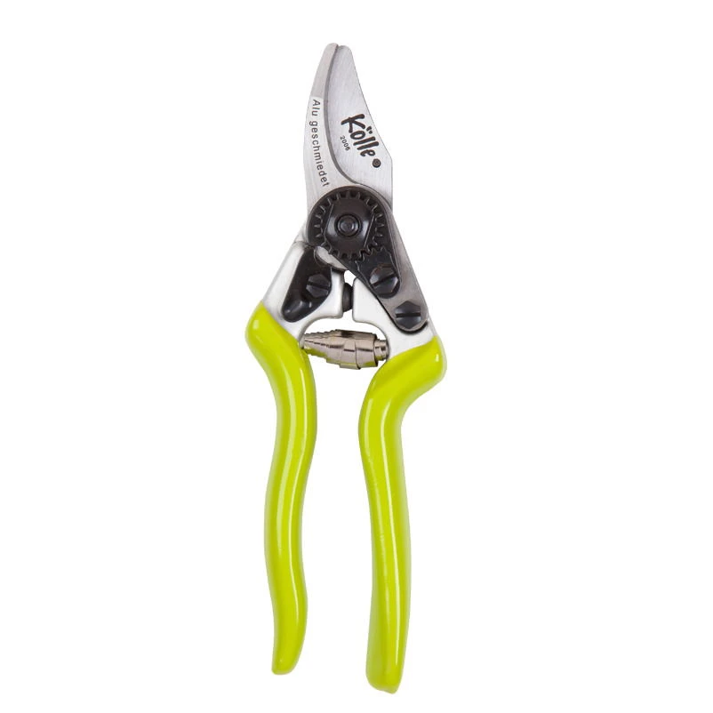 Die handliche Gartenschere in frischem Kölle-Grün verfügt über ergonomisch geformte Griffe, die auch mit kleinen Händen problemlos gefasst werden können. Klinge und Haken dieser exklusiven Gartenschere wurden aus hochwertigem Carbonstahl gefertigt. Außerdem lassen sich der Gummianschlag, Drahtschneider, Klinge und Feder bei Bedarf spielend leicht auswechseln. Mit dem im Lieferumfang enthaltenen Gürtelhalter lässt sich die Gartenschere allzeit griffbereit am Gürtel tragen.