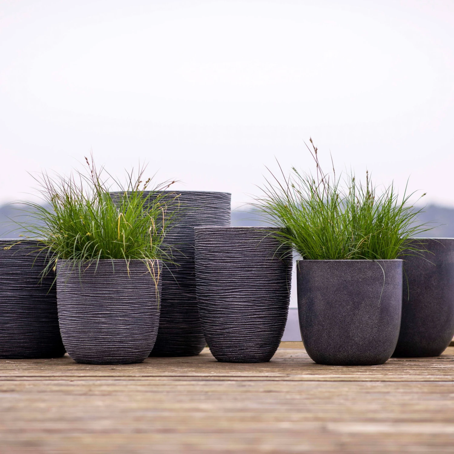 Mit dem dekorativen grauen Pflanzgefäß ‚Smooth‘ leisten Sie einen wertvollen Beitrag zum Umweltschutz, denn dieser Pflanztopf aus dem Hause Capi Europe besteht zu 100 Prozent aus recycelten Materialien. Vor allem Fischernetze, Korken, aber auch alte Kunststoffpflanztöpfe kommen dabei zum Einsatz. Das Pflanzgefäß ‚Smooth‘ überzeugt nicht nur durch eine anspruchsvolle Optik, sondern ist auch bruch- und frostfest sowie UV-beständig.