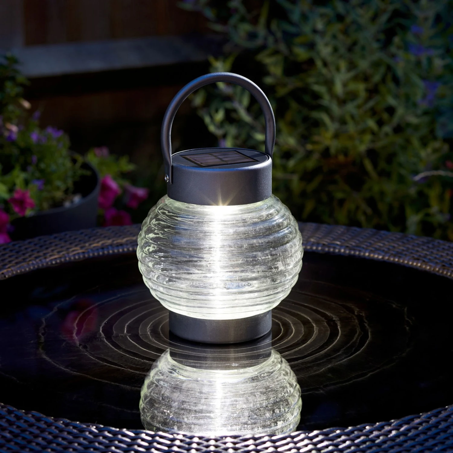 Diese dunkelgraue Solar Laterne ‚Globe‘ 365 / 10 Lumen ist ein schönes und funktionales Gartenlicht. Die Leuchtstärke richtet sich automatisch nach dem tagsüber gespeicherten Licht. Die 365 Technologie ermöglicht eine ganzjährige Nutzung dieser Laterne. Sie hat die Maße 17 x 16,5 cm und ist ideal für Gartenwege oder Abgrenzungen im Außenbereich.