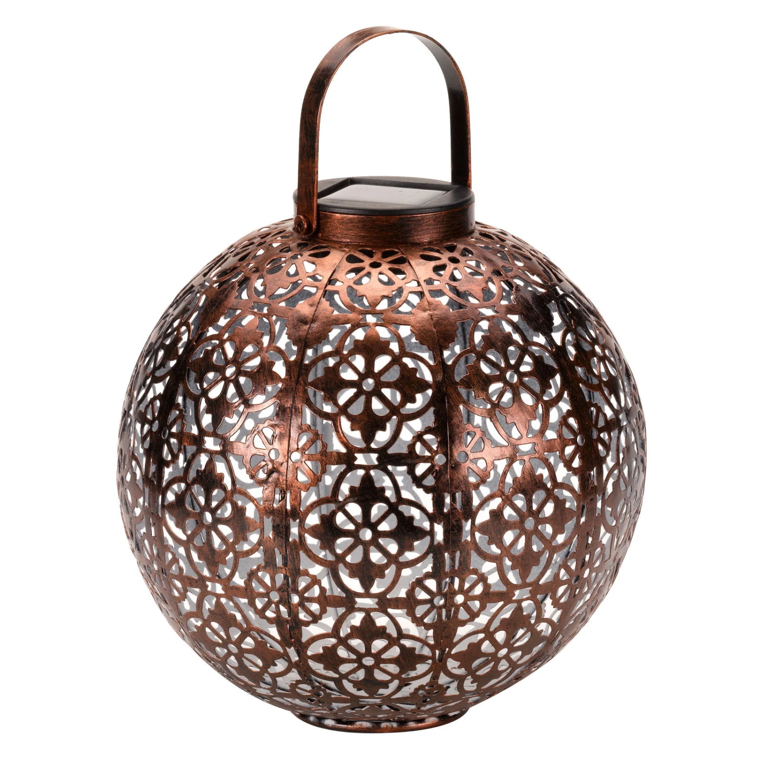 Die außergewöhnliche und besonders hübsche Solarleuchte „Damast“ aus Metall begeistert im nordafrikanischen Design und trendiger Farbe. Die Solarlaterne in Form einer Kugel ist für den Outdoorbereich bestens geeignet und dafür konzipiert. Am Tag überzeugt die Solar Laterne als charmante Deko, bei Dunkelheit zeigt sie eine spektakuläre Beleuchtung in Ihrem Garten, auf der Terrasse, dem Balkon oder auf dem Weg Ihres Hauses. Mit der schönen Solar Laterne zaubern Sie Stück für Stück eine Wohlfühloase aus Ihrem Garten. Die solarbetriebene Leuchte besitzt ein warmes, angenehmes Licht und bringt Helligkeit nach Draußen. Das Muster in der Metallwand der Lampe wird durch das Licht reflektiert und zeichnet wunderschöne Ornamente auf den Boden und die Wand.